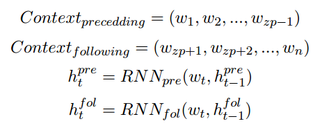 受Lin et al. (2017)的启发,我们这里利用自注意力机制来建模零代词的上下文信息。我们利用两个循环神经网络(RNN)来分别建模零代词上文和下文,然后利用这些向量进行自注意力的建模。对于一个零代词,我们将其对应的上下文信息利用RNN建模成序列词嵌入(embedding)。