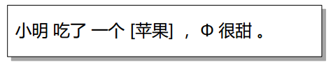 中文的零指代,是中文中存在的一种特殊的现象。它可以被视为是指代现象中的一种特殊情况。具体而言,在中文等代词缺失(pro-dropped)的语言中,读者能够根据上下文的关系推断出来的部分经常被省略,被省略的部分在句子中又承担相应的句法成分,并且回指前文中的某个语言单位。被省略掉的部分称为零指代项或者零代词,被指向的语言单位被称为先行语。图1是一个中文零指代现象的示例。在这里,“Φ”表示一个零代词,它的先行语为"苹果''。
