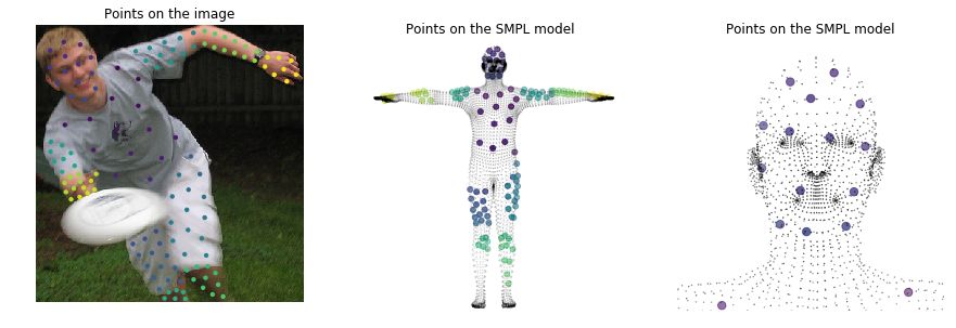 请参阅 notebooks / DensePose-RCNN-Texture-Transfer.ipynb 以在 3D 模板(SMPL)模型上本地化 DensePose-COCO 注释: