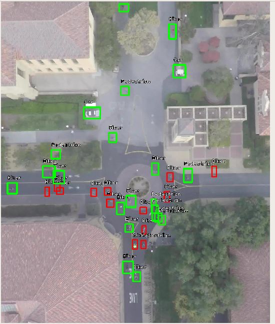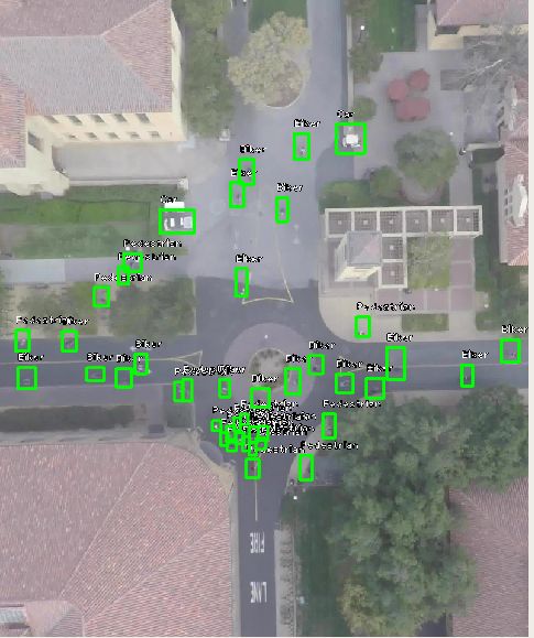 从大量斯坦福德无人机数据集中选择图像示例。我采用了大约 2200 张训练图像,包含30000 多个标注信息,并保存了大约 1000 张图像进行验证。我已经把我的图像数据集放在google drive[4] 上。