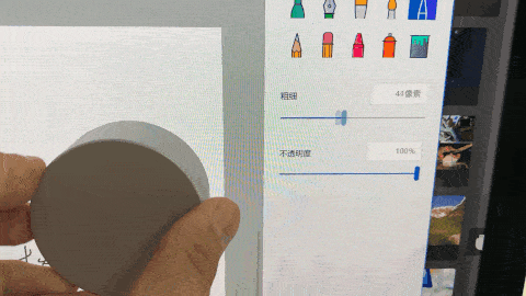 令人惊叹的屏幕只是面向创作者的对话界面,但这并不是Surface Studio 2在设计上创新的全部。前面已经介绍过连接屏幕和主机的镀铬支架,其实还有个学名叫“零重力支架”。“零重力支架”延续了第一代Studio的设计,只需要用手指轻轻往后一推或往前一勾,屏幕就能放倒。使用场景是这样的:拿起侧面吸附的Surface Pen,点击Surface Pen的顶部按钮,把屏幕勾过来,开始画画。不过实际体验下来,镀铬支架的推拉并没有“零重力”那么夸张罢了,只不过配合上支架的阻尼感,一个瘦瘦的女生也可以轻松操作,在画画的时候有些仪式感。实际上,艺术创作本身是一个灵感激发的过程,本质上是打破常规的东西。▲阻尼感特别棒很多时候我们在创作时使用的是键盘和鼠标,Surface Studio 2给出的答案其实是“Surface Pen”和“Surface Dial”。所谓艺术来源于生活,但生活本身也需要创意。Surface Dial是微软推出的一个平板电脑配件,类似于一个“旋钮”。比如在绘画类软件中,通过旋扭可以执行撤销操作:▲这个图片来自:Adobe旋钮也可以调节颜色以及参数:▲这个图来自:极果网还可以放大缩小:▲这个图来自:极果网而在一些网页浏览的操作中,它可能还要承担鼠标滚轮的功能。你可能会问,Surface Dial玩起来倒是挺炫,到底有没有生产力?需要坦诚的是,关于这款产品的实际体验,我们并非设计师,而且这次我们也没能体验到Surface Dial,但采访了几个用Surface Studio的设计师朋友后发现,基本分为两派:对于那种熟悉了Windows快捷键的老派设计师,他们都认为Surface Dial用处不大,这种点击旋转再点击的操作反而更慢,比如需要填参数的时候;但对于一些刚接触Surface Studio 2的设计师来说,Surface Dial更便捷,赋予了操作上更大的想象力。当然,我们更愿意相信的是:Surface Dial是微软在艺术创作类软件交互上一个新的方向,这个交互方向是一个需要丰富的过程,更期待微软在Surface Dial上可以完善出更多的东西。