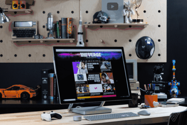 就像是很多不会用MacOS但买了iMac装上Windows的公司前台一样,Surface Studio 2的外形摆起来很好看,这具备了一定的外貌协会群众基础。在拆开包装的那一刻,会因为Surface Studio 2包装和产品都设计的非常精良而找不到合适摆放它的地方。但它却很百搭,适合融入各种场景。Surface Studio 2的外形相比于第一代产品没有特别多的变化,比如银色的机身还是挺“性冷淡风”的,如果你的家居环境恰好是那种日式实木的,或是现代简约设计风格的家装,那它就特别适合。借用几张媒体图:▲来自Digital Trends还有这样:▲来自The Verge我自己的工作台:Surface Studio 2在外观设计这块比较讲究,比如正面只有一个28英寸的PixelSense显示屏,没有任何按键,屏幕分辨率为4500x3000。Surface Studio 2的全部按键被设置在机身右侧,且只有音量调节键和开机(屏幕唤醒)键。屏幕和主机的连接部分用更显高级的镀铬装饰,而主机部分更像是一块优雅的银色“方砖”.......只管美就够了。Surface Studio 2的全部接口都集中在背部,在梳理USB线的时候特别方便,它不像是其他的某些显示屏,左边三个USB接口,右边两个Type C接口,插起来像一个天线宝宝。Surface Studio 2所有的设计方向都是向着美去的。当然,好看又不全是“花瓶”,这并不代表它没有性能了,Surface Studio 2还是有些硬实力的。Surface Studio 2采用英特尔酷睿i7-7820HQ处理器,搭配了32GB 内存(DDR4/2666MHz)和1TB的固态硬盘,在显卡方面配备英伟达 GeForce GTX 1070,当然所有的一切,其实都是在支援另外一个核心部件——屏幕,它采用了一个28英寸的PixelSense显示屏,分辨率为4500x3000,屏幕比例为3:2,更方便充当一个“画板”进行艺术创作。