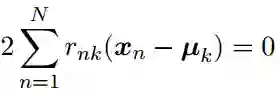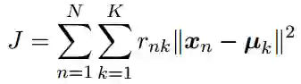 于是我们需要找到{rnk}和{μk}的值,使得距离平方之和J最小化。