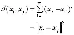 而K-means是用欧氏距离的平方来度量样本之间的相似度。欧式距离的平方公式如下: