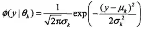 Ø(y|θk)是第k个高斯分布的概率密度,被称为第k个分模型,参数为θk=(μk, αk2)。
