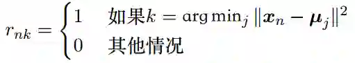 将某个样本分配到第k个类别,如果该样本和第k个类别的距离最小,那么令rnk=1。