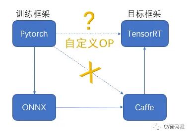 所以我们可以看到图上那条更迂回的路,经过ONNX这个较为通用的格式,因为Pytorch—>ONNX—>Caffe—>TensorRT从部署角度看才更可行。