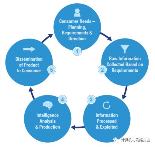 1. 计划、要求和方向 – 情报收集的计划和方向包括对整个情报工作的管理——从优先情报要求(消费者3领导和进一步需求的定义)到最终情报产品。