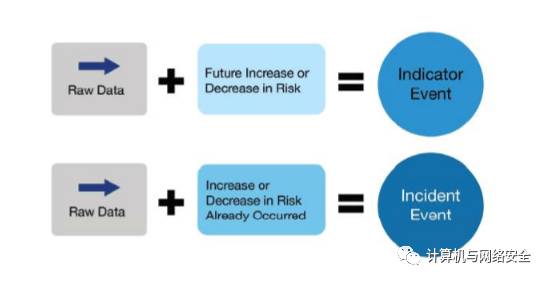 这些就是能被用来确认一个威胁正在增长的风险,或唯一标志一次袭击的特定碎片化数据。迹象性事件和事件性事件本身都可以是技术性(数字的)或非技术性的(物理的),而且可以被用来辨识围绕一个潜在的或已表现出来的威胁或攻击的环境因素。这些包括: