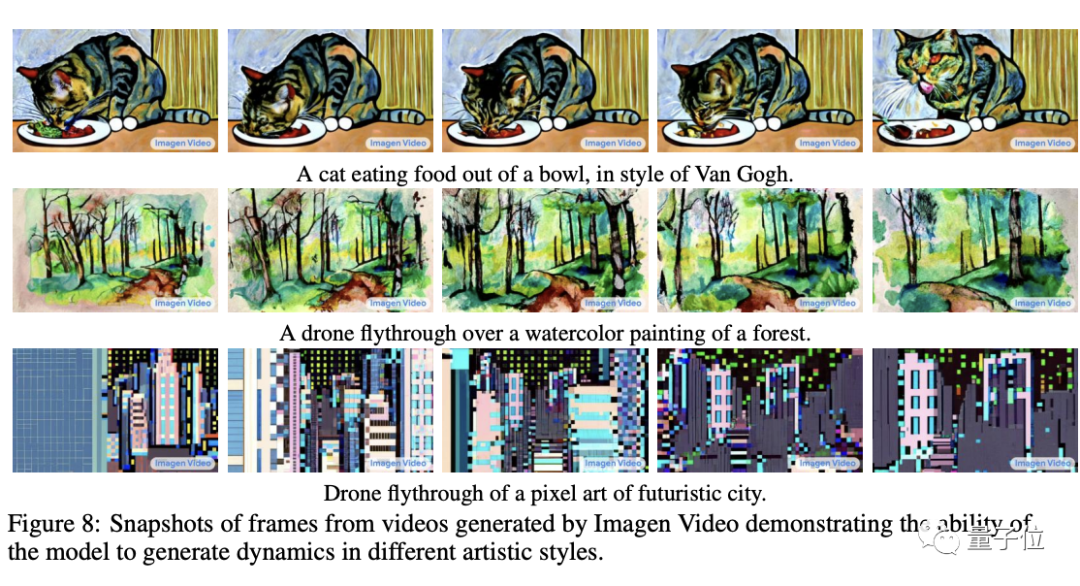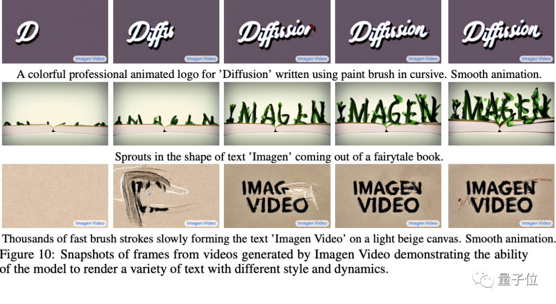 最后它还继承了Imagen准确描绘文字的能力,在此基础上仅靠简单描述产生各种创意动画,