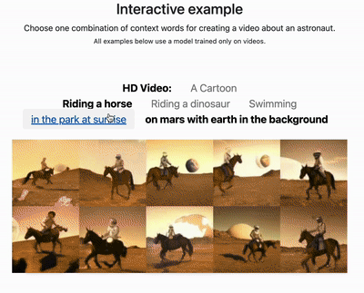 提到模型训练,和大型图像系统一样,Phenaki也主要使用文本-图像数据进行训练,此外,研究人员还用1.4秒,帧率8FPS的短视频文本对Phenaki进行训练。