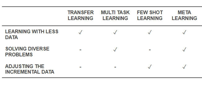 一次学习(one-shot learning)和少次学习(few-shot learning):这两类是研究的热门区域,他们和零次学习不同,因为它们会用到即将学习的技巧做示范,或者只需要少量迭代。
