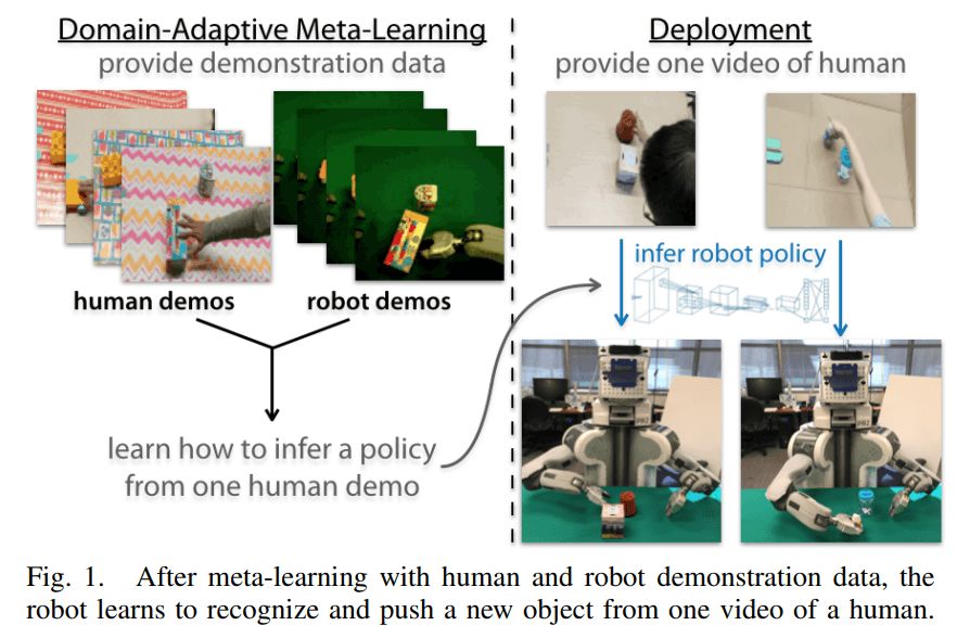 最近一种混合了一次学习和元学习的方法。来自One-Shot Imitation from Observing Humans via Domain-Adaptive Meta-Learning