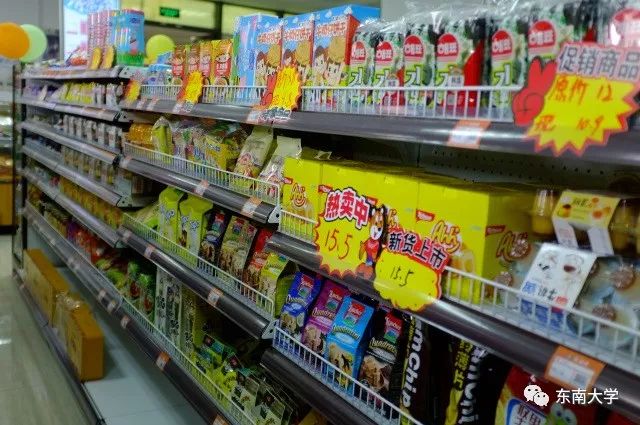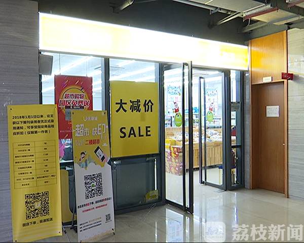 在东大无线谷一栋灰色建筑的二楼,有采访记者见到了这个刷爆朋友圈的网红超市。货架上的商品琳琅满目,“热卖、大减价、促销”等字眼吸引了很多顾客。