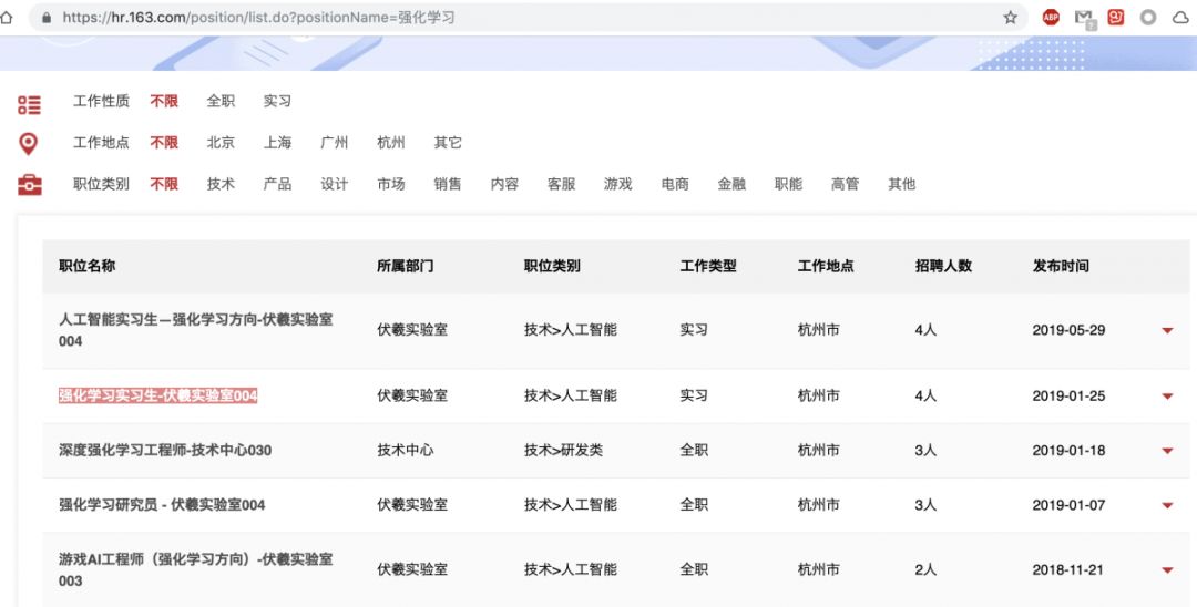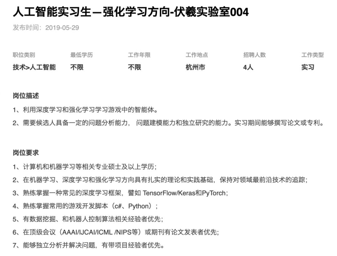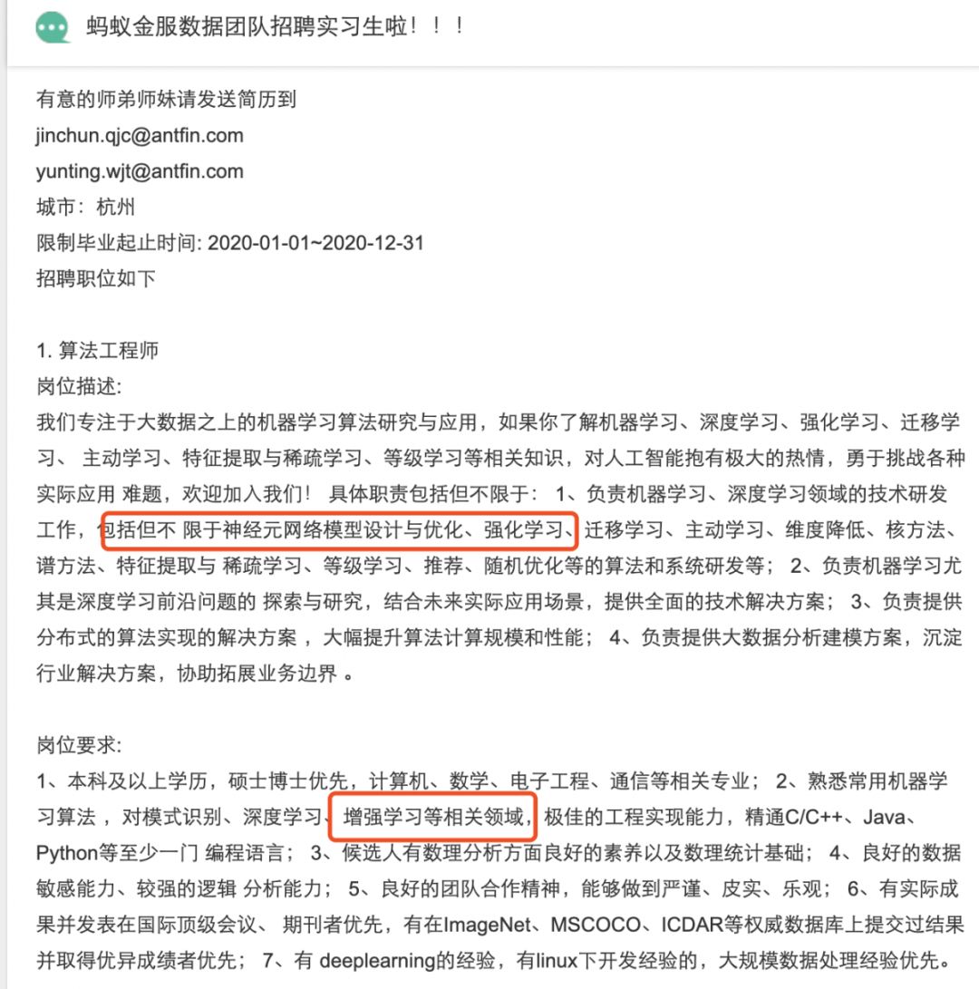 注:腾讯的许多算法岗位,如果有强化学习经验都有机会,详情见具体的招聘主页:
