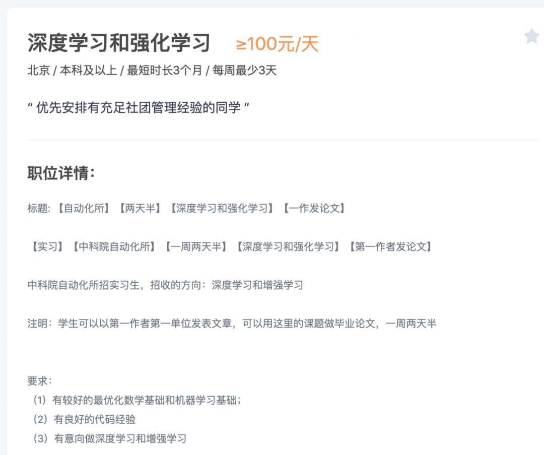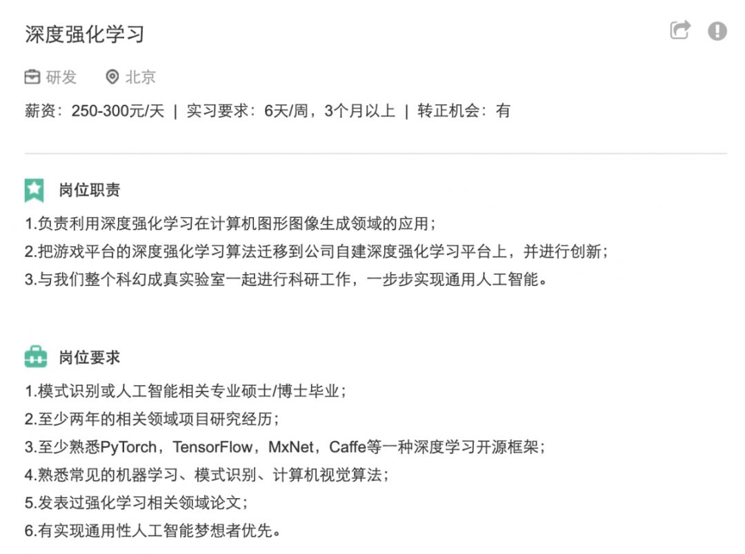 为此,本文为大家整理一些关于深度强化学习方面的实习、工作方面的内容,希望能够帮助各位步入DRL世界的DRL-er,废话不多说,上内容。