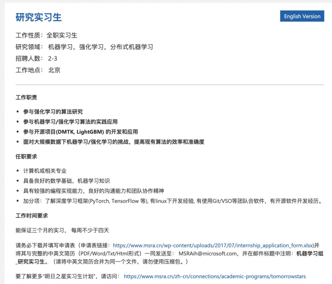地址:https://www.msra.cn/zh-cn/jobs/interns/ml-research-intern-20170605