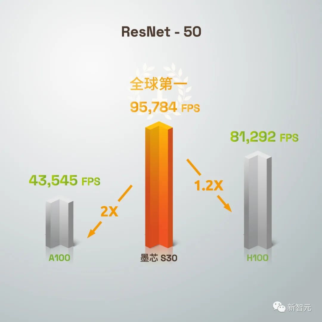 中国AI芯片企业首次超越英伟达「史上最强GPU」、未来4nm产品——H100:中国AI芯片明星创业公司——墨芯人工智能(以下简称「墨芯」)S30计算卡以95784 FPS的单卡算力,夺得ResNet-50模型算力全球第一。