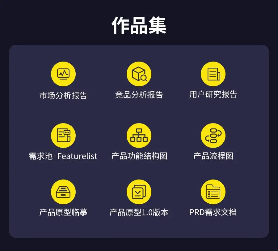学习与实战兼顾,7次大作业帮你零基础打造属于你自己的产品实战项目。课程学习过程中所输出的各项作业产物,都会经过资深导师的精细批改和指导,整理成作品集就可以成为你产品求职中的就业利器!