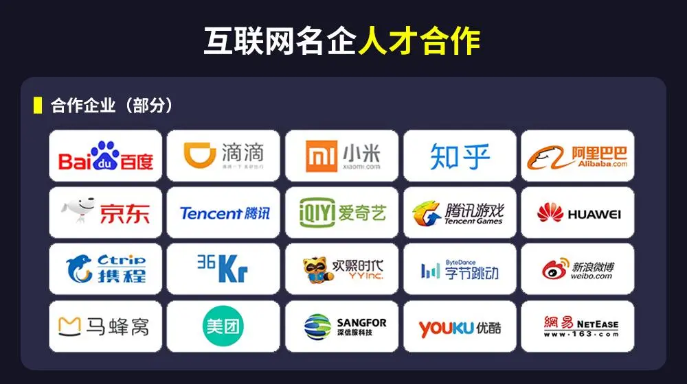 11项求职就业服务与合作企业资源网。学习的最终目的是成为企业需要的产品人才,成功就业。业内其他产品课程,听完课就“戛然而止”了,导致很多学员依旧不懂这些问题: