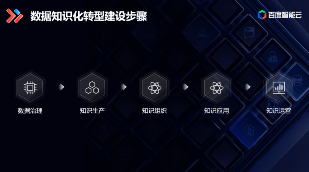 那么企业如何利用知识中台,快速实现数据知识化建设?百度智能云 AI 产品业务部解决方案总监楚畅在分享中提到,百度的知识中台包括了数据接入、知识生产、知识组织、智能应用以及知识运营几大模块。通过五大步骤可助力企业全流程实现数据知识化。
