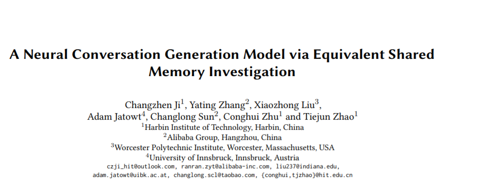 题目:A Neural Conversation Generation Model via Equivalent Shared Memory Investigation