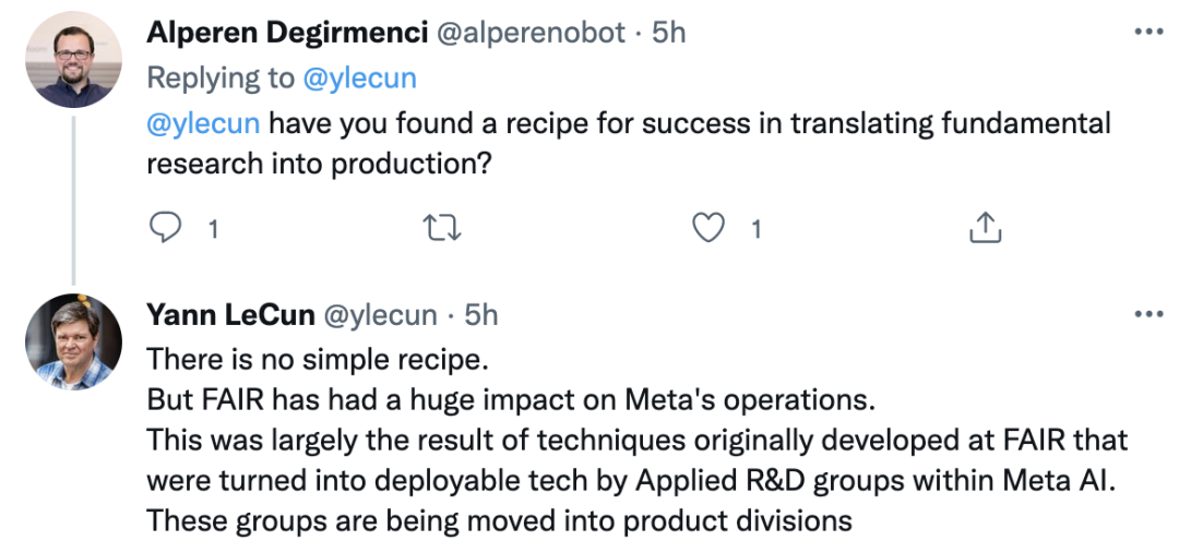 还有人直呼LeCun,「你是否找到了基础研究转化生产的成功秘诀?」