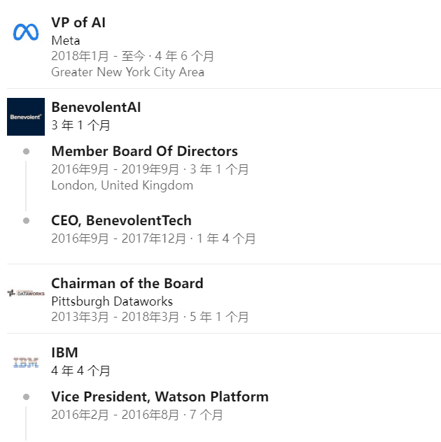 顺其自然地,Pesenti也就进入IBM工作,这一待和Meta一样,也是4年。
