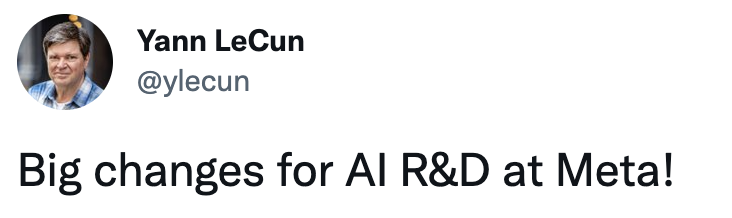 Yann LeCun表示,「Meta的人工智能R&D发生了重大变化」。