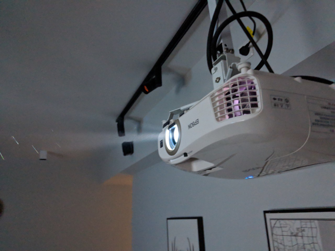 但这终究是妥协之举,投影仪发热散热以及相伴的噪音都会对坐在近处的人造成一些不适,走线也是个问题。由于我在装修之初就考虑了安装问题,因此选择了吊顶正投安装。