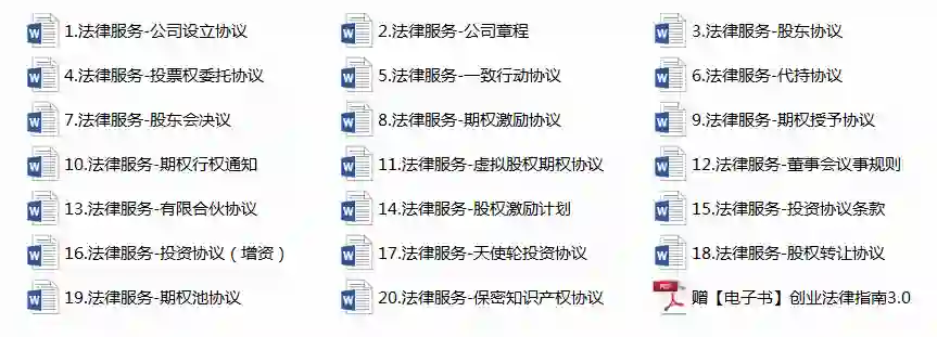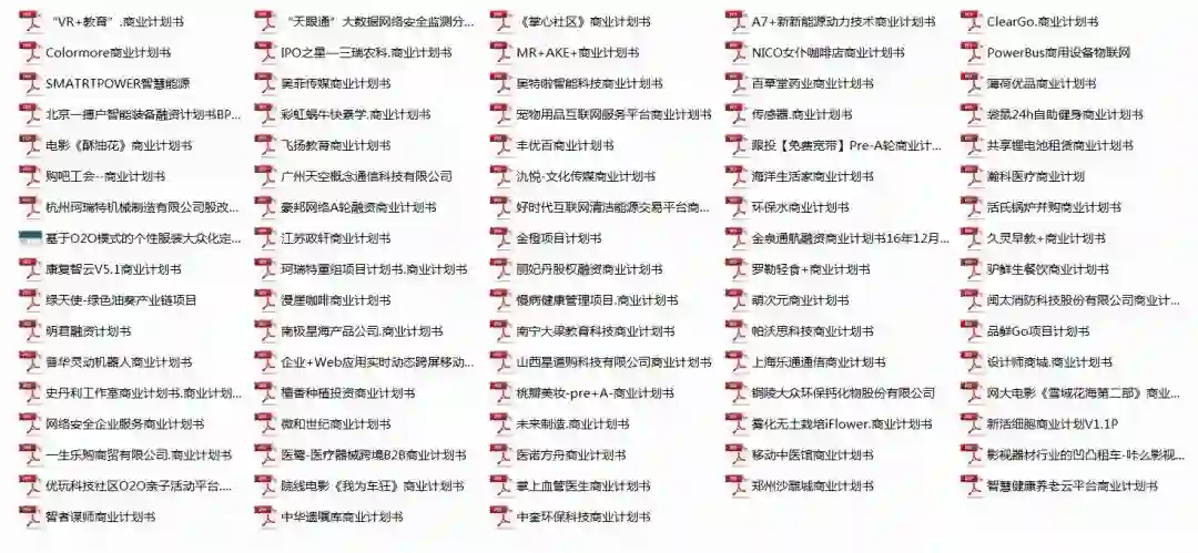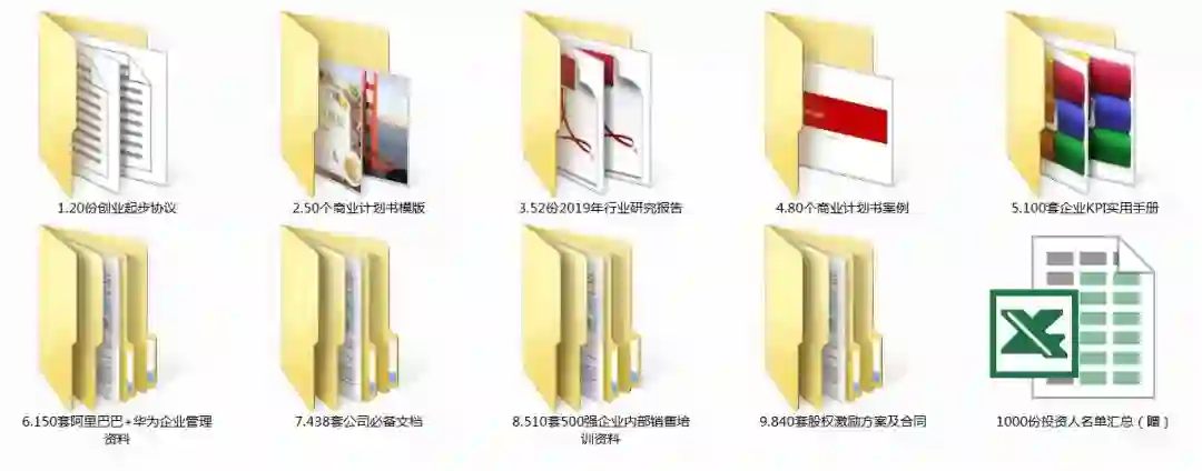 内容涵盖创业相关理论知识、创业阶段必备管理常识、股权激励文档、商业计划书模板+案例、BP制作说明书、投资人名单等等……