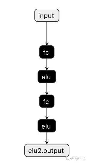 但是只有IR并没有什么卵用,于是我基于这一套IR尝试构建一个推理引擎,事实上这件事情是可行的,我通过简单修改了一下netron的代码,可以实现这套IR的可视化,比如可视化一些简单的模型,例如几层FC没有任何问题: