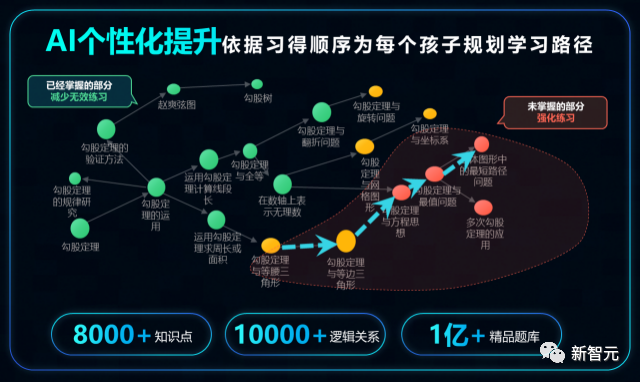 这套系统已经有5万多所学校、1.3亿师生在使用了。数据表明,单点知识点的学习需要的训练量下降了58%,学习兴趣提升了29%,焦虑情绪下降了20%。