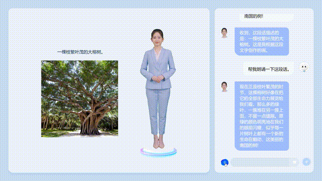 而且还可以要求换人,比如说「用一位亲切的女老师来读」,然后AI就会变成一个女老师的形象和口音。