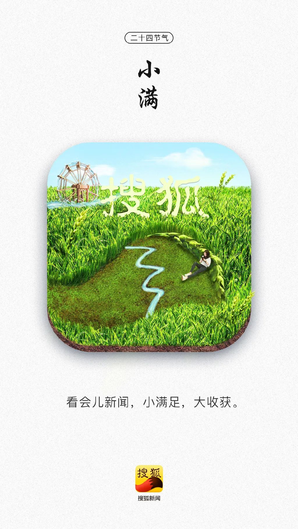 搜狐新闻的海报简洁明了,文案“看会儿新闻,小满足,大收获”将节气与产品特点结合,简单易懂。