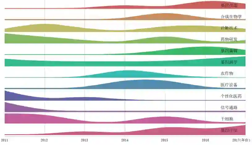 我们通过技术手段,综合分析了生物医学、能源材料以及计算机与通信这三大领域入选公司的入选理由、专利申请和新闻报道等信息,总结出了 2011 年到 2017 年入选 TR50 的企业的研究焦点,希望可以借此分析行业变化的趋势。