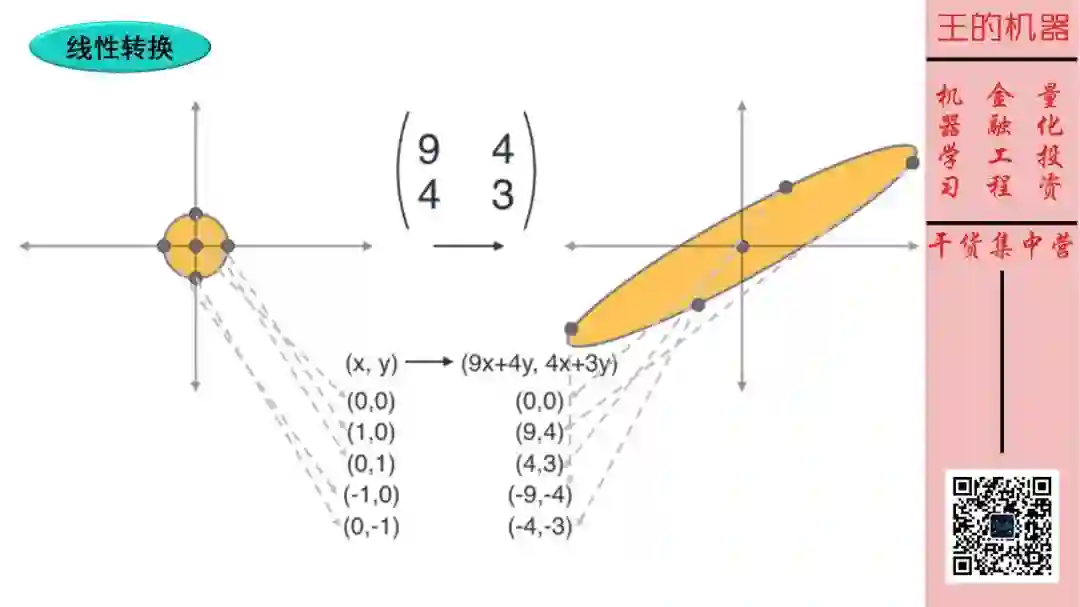 不懂?没关系,跟着上图,试着用矩阵 [9, 4; 4, 3] 来转换几个标准点