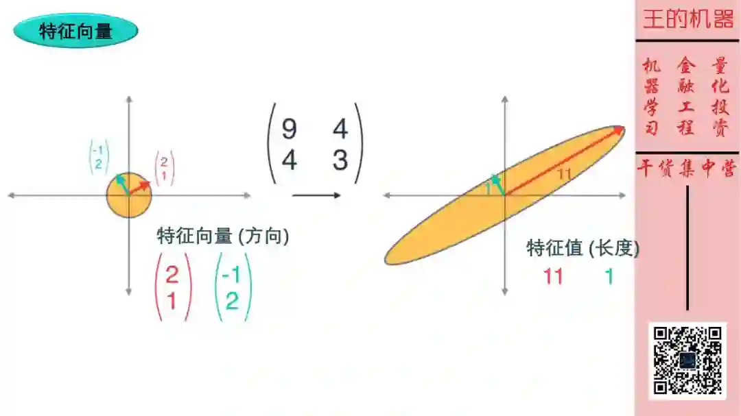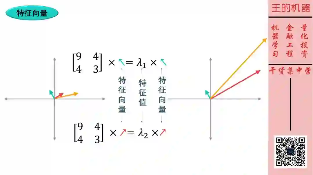 你看,等式左边是用矩阵相乘将向量做了线性转化,而等式右边是用常数相乘将向量做了放缩 (没改变向量的方向哦)。