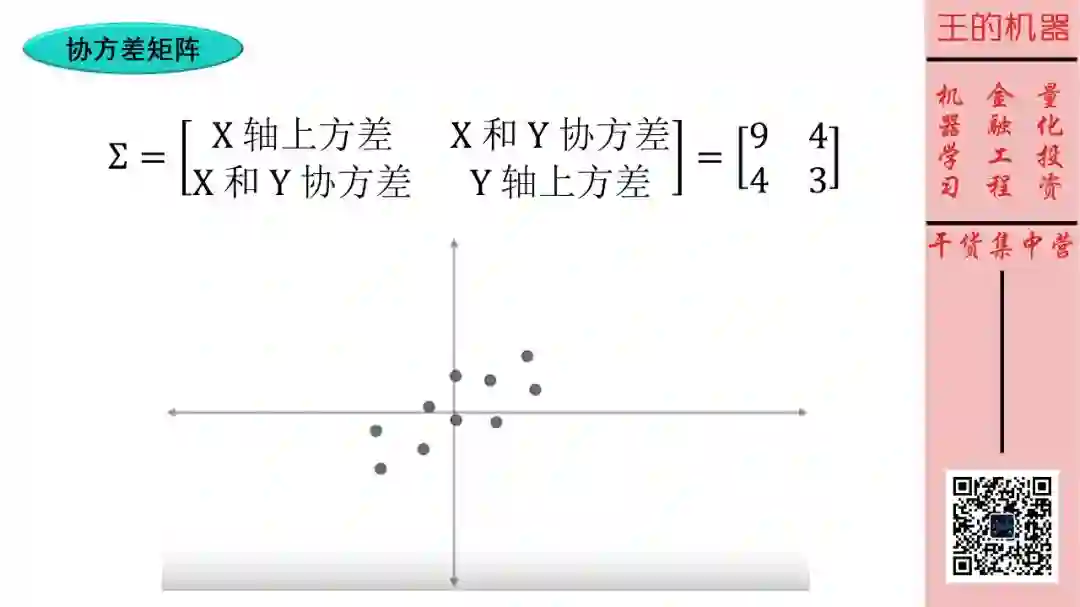 根据上面数据模式,我们计算出来他的协方差矩阵为
