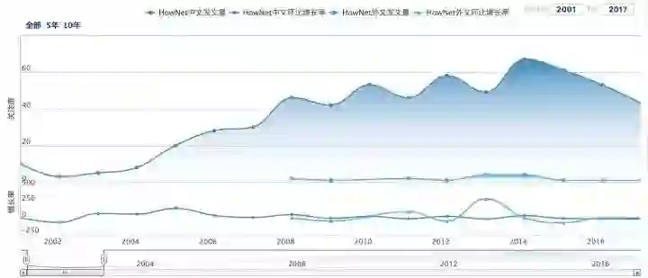中国期刊网(CNKI)统计HowNet学术关注度变化趋势