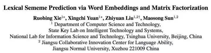 Ruobing Xie, Xingchi Yuan, Zhiyuan Liu, Maosong Sun. Lexical Sememe Prediction via Word Embeddings and Matrix Factorization. In IJCAI, 2017.