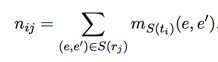 在知识库上,relational fact 即为三元组。对于每个三元组,统计出共现的实体对,记做S(rj)。根据关系标签的映射,我们可以得到textual relation和kb relation的共现信息: