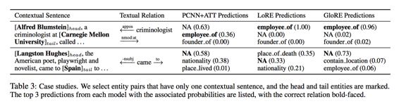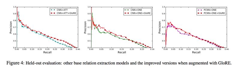 最后,本文用同样的PCNN+ATT作为BASE模型,用不同模型作为叠加,证明了GloRE的加成效果最好。