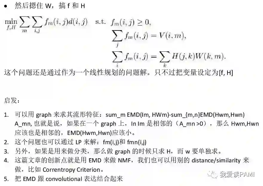 这篇文章讲的是非负矩阵分解,但是分解的结果跟原来的矩阵的距离用的是推土机距离。作者是以色列的Roman Sandler。