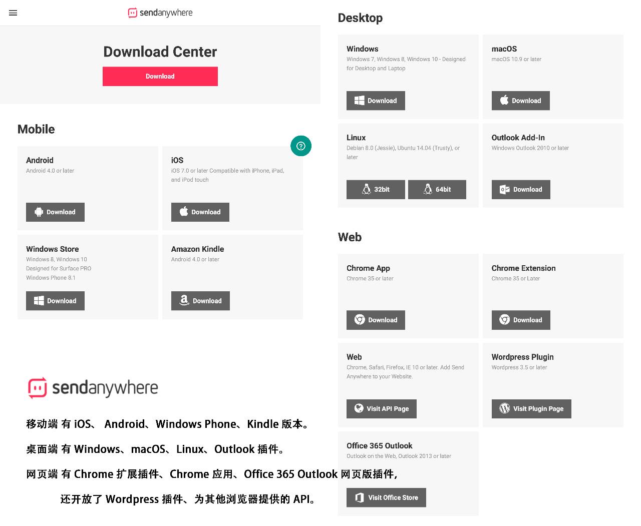 SendAnywhere 支持全平台的客户端