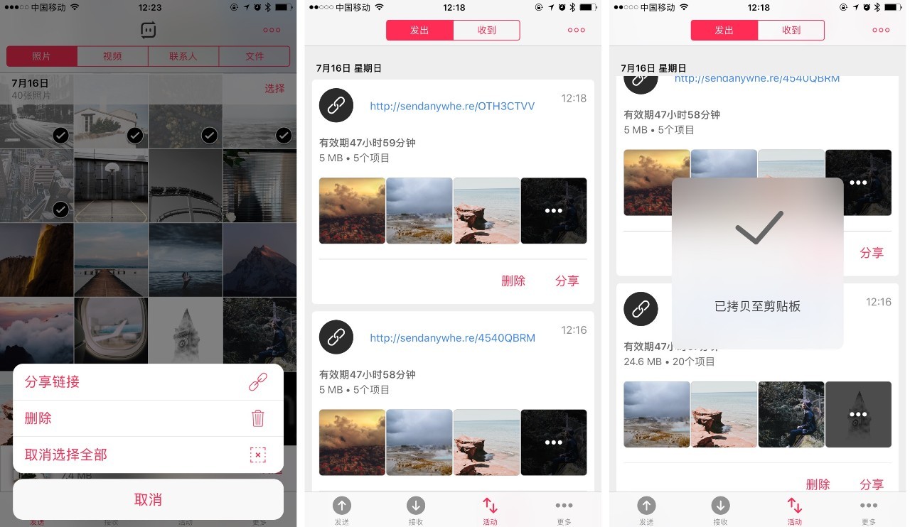 如果说 10 分钟的二维码和数字密钥不足以让我们传输什么大文件,那么通过链接,几乎可以完成大部分短期的分享操作了。
