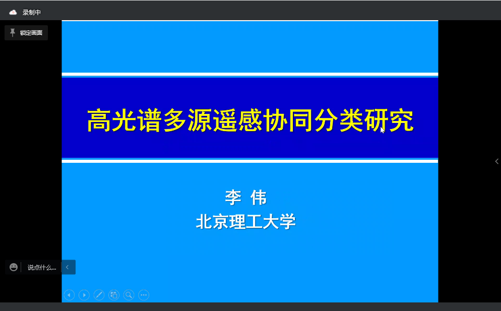 来自北京理工大学的李伟教授在此次会议上作了题目为“高光谱多源遥感图像协同分类研究”的报告。报告全面分析了高光谱数据强谱间、弱空间的分辨率特性和单源高光谱数据在应用中存在的限制性因素,围绕高光谱多源遥感图像协同分类这一国际学术界的热点和难点问题,以多尺度图像匹配融合、多通道图像特征联合、多模式协同分类建模为主线开展本次汇报,并对该领域的未来研究方向进行了展望。
