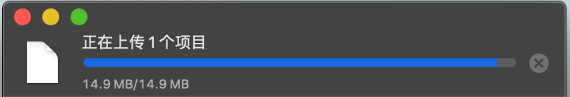 正如上文所述 Mac 上 iCloud 云盘同步卡住时,最容易注意到的现象就是在访达的 iCloud 云盘旁边显示一个永远也不会被填满的圆圈,而且点击这个圆圈,还有一个永远走不满的进度条,甚至 macOS 还会直接弹窗提示「你某某文件无法进行同步」。