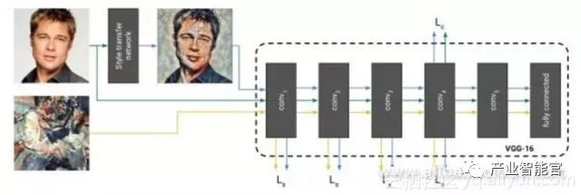 上面直接生成风格迁移的图像的方法的缺点是需要多次迭代才能收敛。解决该问题的方案是训练一个神经网络来直接生成风格迁移的图像。一旦训练结束,进行风格迁移只需前馈网络一次,十分高效。在训练时,将生成图像、原始图像、风格图像三者前馈一固定网络以提取不同层特征用于计算损失函数。