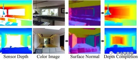 对于深度图像的噪声问题,微软研究院提出双边滤波的方案去噪同时较好保持边缘细节,此外华盛顿大学提出了利用RGB进行引导,先检测边缘再去噪,实现高精度高质量的去噪,但此方法计算量大在CPU上实时性较差。普林斯顿大学提出利用RGB图像辅助计算表面法线,实现填补由于材料反光和过度曝光产生图像空洞的问题,从而实现图像去噪滤波。